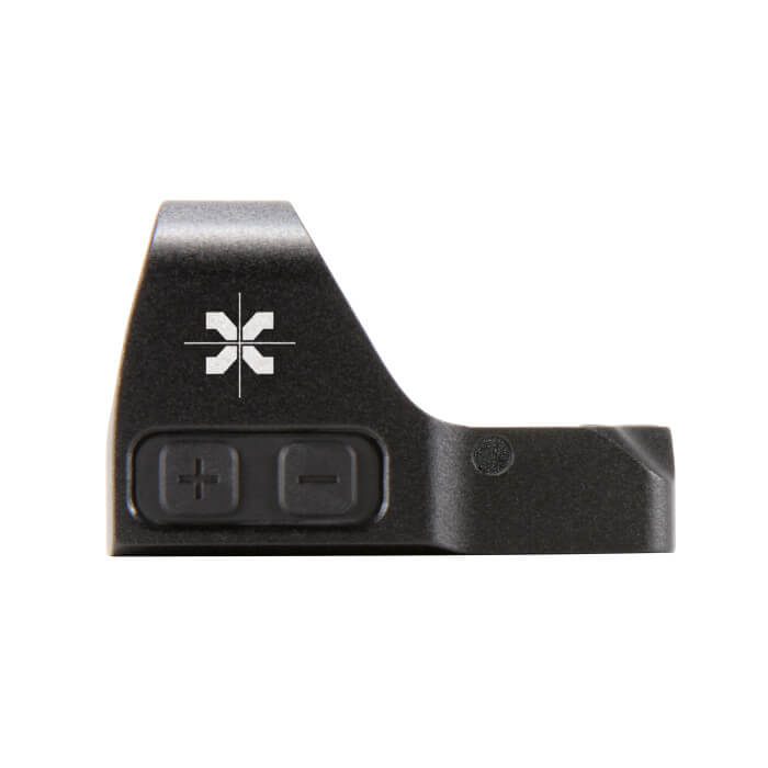 Svelte and compact, the Axeon Optics MDPR1 Mini Pistol Reflex Sight is smartly designed to top off you favorite pistol with an optical sight. Ths MDPR1 features tough aluminum frame construction and sends power through a CR2032 battery for up to 30,000 hours through 11 brightness settings. Adjustments are made in 1 MOA clicks values through a 45 MOA range for elevation and windage. This compact design will attach to optics plates using the RMR pattern and has a 28mm X 19mm objective lens.