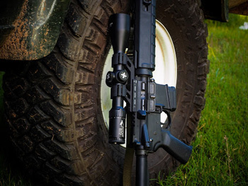 The Dog Soldier Scope uses the traditional Second Focal Plane mil-dot style reticle. This sized-just-right reticle is illuminated in either red or green and has six power settings for each color. Of course its also perfectly usable without any illumination, which works just fine for me in nearly any situation. What would I be missing out on by switching to the Dog Soldier scope? As it turns out, not much actually. In all truth I don’t really shoot beyond 300 yards. The longest range available to me is 300 yards. There's really no need to range and not much in hold-over that needs to be accounted for at these sub-300 yards ranges common to this region. Yes, there is some drop that needs to be accounted for, but I am only going to be shooting at certain things: medium or large game and steel targets. My steel targets aren’t growing and I’ll not be shooting at deer, hogs, or coyotes outside of 100 yards, so the appeal of an FFP optic is a bit diminished for me in the capacity of a hunting optic. Your mileage may vary, as the old saying goes.
