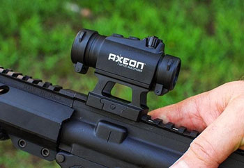 While the rifle is indeed pretty light, I was limited to either flip-up irons or some sort of optic. But since I knew that we had a compact red dot sight in the works and I had a ton of gear to use on the rifle in the meantime, I didn’t pick up a set of irons for it. Finally the long awaited compact red dot came in. The Axeon Optics MDSR1 is in the (ware) house!